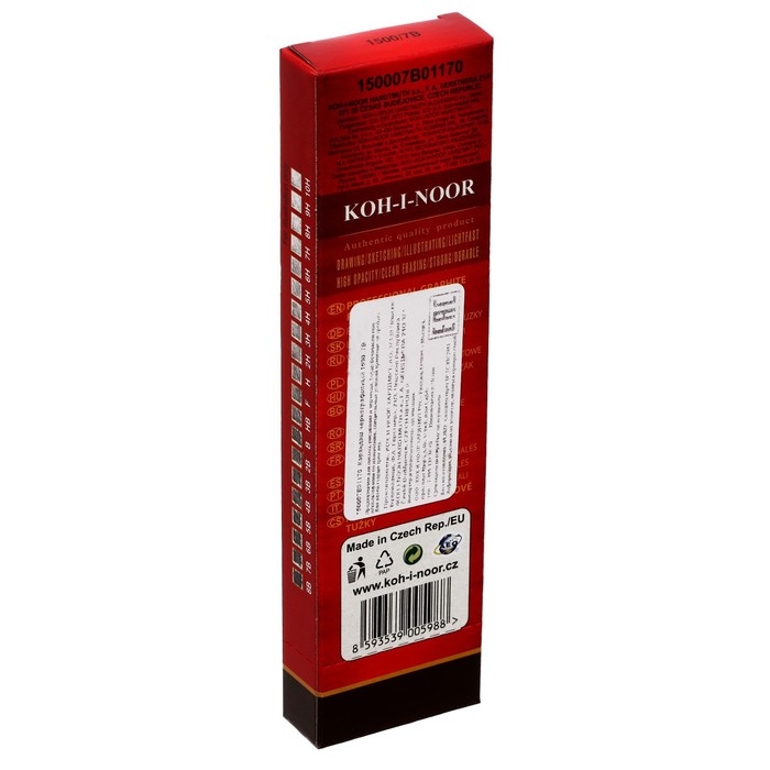 Профессиональный карандаш Koh-I-Noor серии 1500 - наиболее известная модель фабрики. Изготавливается компанией более 120 лет. Модель легко узнаваема благодаря неизменному жёлтому покрытию и позолоченной надписи. Грифель карандаша мягкий и прочный. Оставляет яркий и насыщенный след. Корпус изготовлен из прочной древесины. Это делает карандаш очень удобным при работе с чертежами, графикой и художественными рисунками.