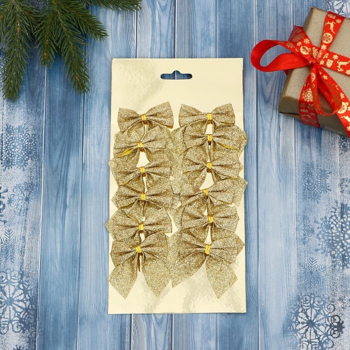 Украшение ёлочное "Бантик с блеском" (набор 12 шт) 4,5х5,5 см, золото