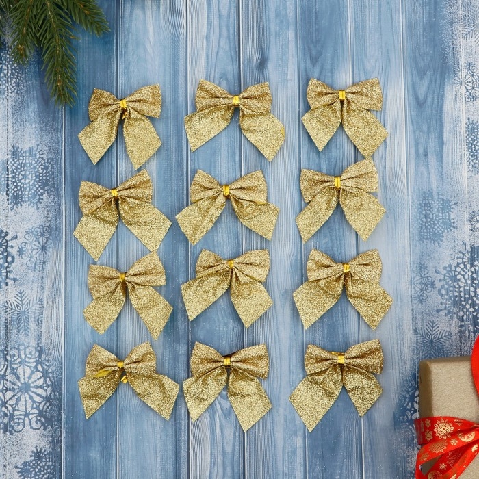 Украшение ёлочное "Бантик с блеском" (набор 12 шт) 4,5х5,5 см, золото преобразят новогоднюю ель, также ими можно украсить и любые другие предметы. Сделайте праздничное убранство сияющим!