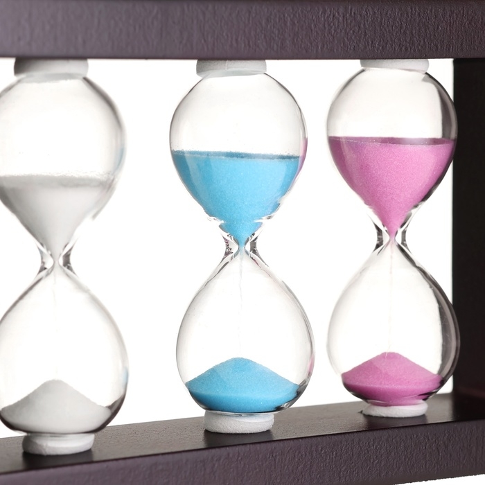 Разноцветные песочные часы – лучший способ декорировать интерьер комнаты или офиса. Изготовленные из МДФ, стекла и декоративного цветного песка, эти часы подойдут под любой интерьер. Имеют временной цикл в 3, 4 и 5 минут и прекрасно используются для отсчета времени в роли таймера, а также станут оригинальным и полезным атрибутом в виде сувенира. Глядя на движение песчинок вы постепенно будете чувствовать как проходит ваша тревога и стресс. Стилизованные песочные часы состоят из двух сосудов, соединённых узкой горловиной, один из которых частично заполнен песком.