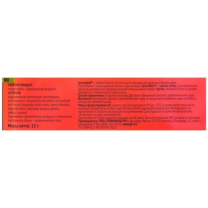 Ароматизатор-освежитель воздуха, Greenfield «Francais Le Rouge»