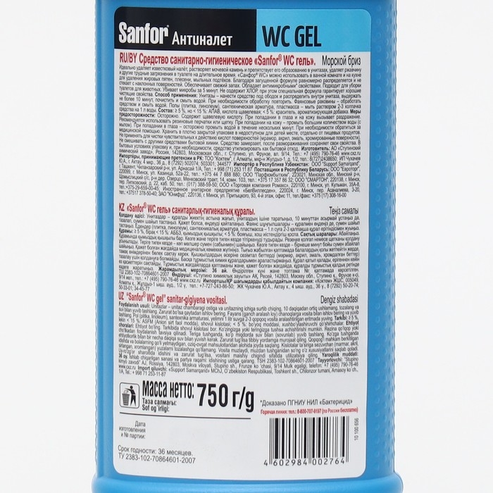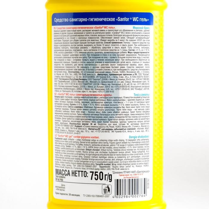 Гель для сантехники Sanfor WС, "Морской бриз", 750 мл
