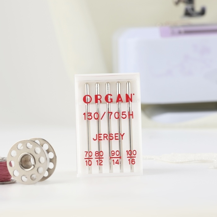 Качество швейной иглы важно так же, как механизм машинки. Данные инструменты предназначены для вязаного трикотажа. Шариковое остриё раздвигает волокна, а не прокалывает их и не портит полотно.