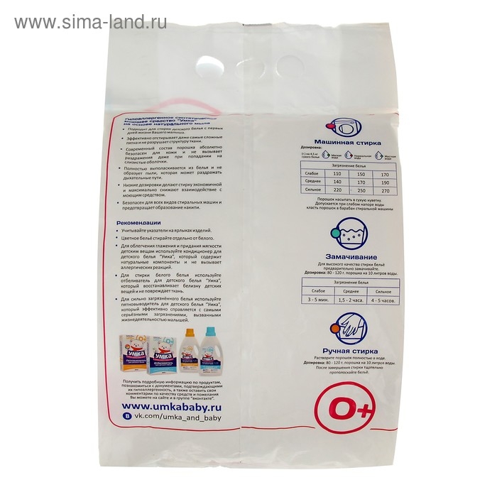 Стиральный детский порошок «Умка» разработан на основе натурального мыла, подходит для стирки детского белья с первых дней жизни.