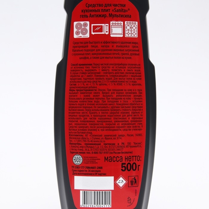 Средство торговой марки Sanita обладает усиленной формулой с обезжиривающими компонентами, поэтому устраняет даже самые трудные загрязнения: застарелый жир, копоть, нагар, пригоревшую пищу, въевшуюся грязь и т. д.