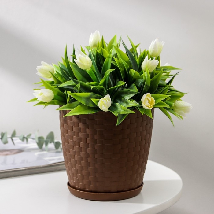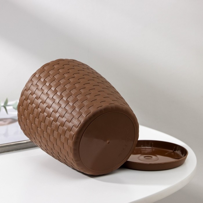 Горшок для цветов с поддоном «Ротанг», 1,2 л, цвет тёмно-коричневый