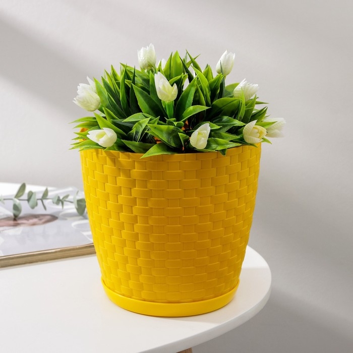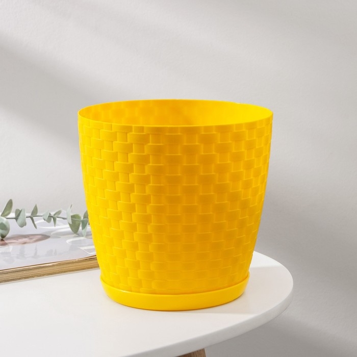 Горшок для цветов с поддоном «Ротанг», 3 л, цвет жёлтый