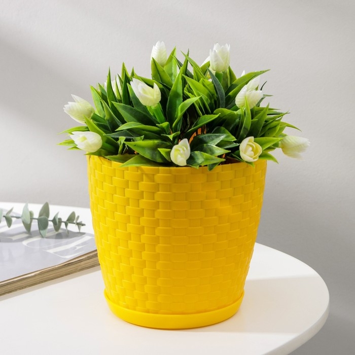 Горшок для цветов с поддоном «Ротанг», 2 л, цвет жёлтый
