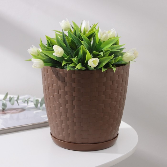 Горшок для цветов с поддоном «Ротанг», 3 л, цвет тёмно-коричневый