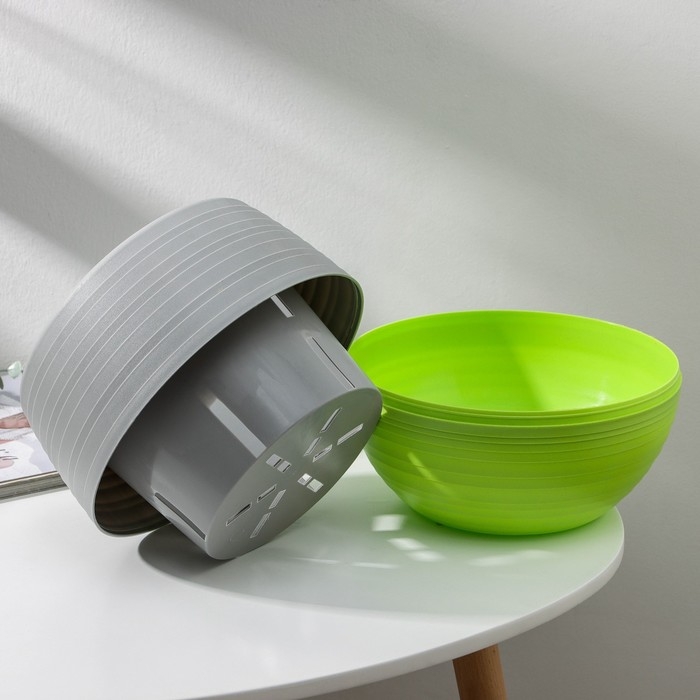 Горшок для цветов с поддоном «Япония», 3 л, цвет серо-фисташковый