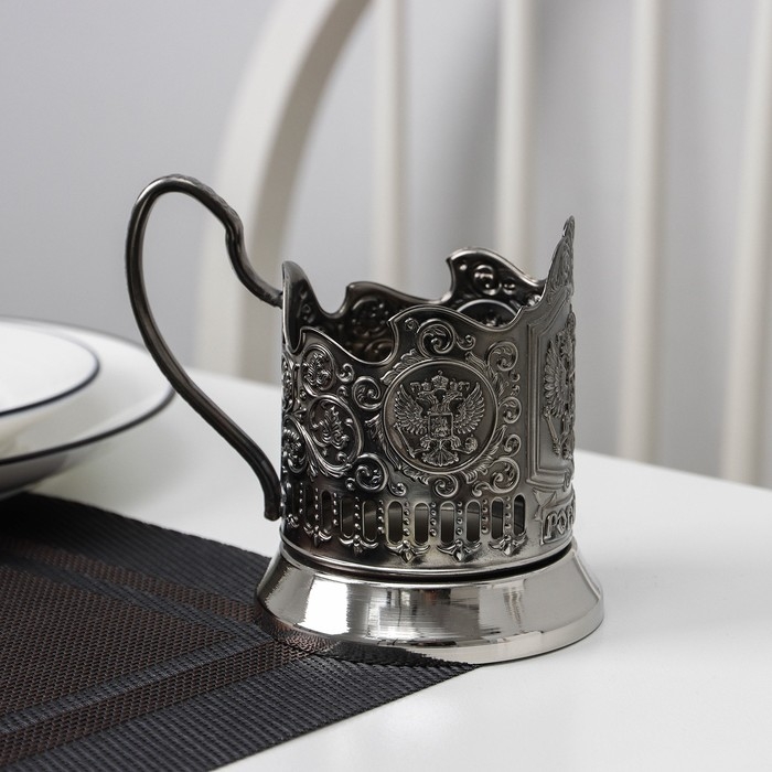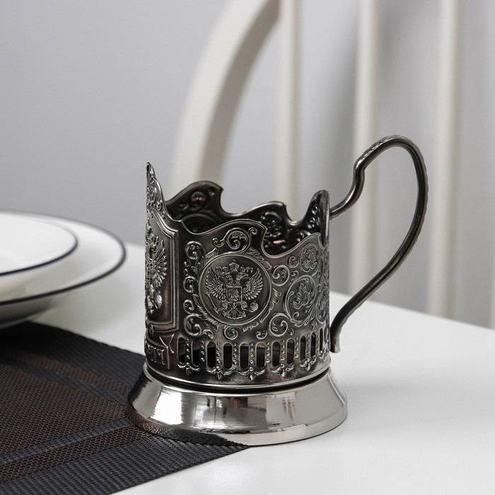 Подстаканник «Герб РФ», стакан d=6,1 см, никелированный, с чернением