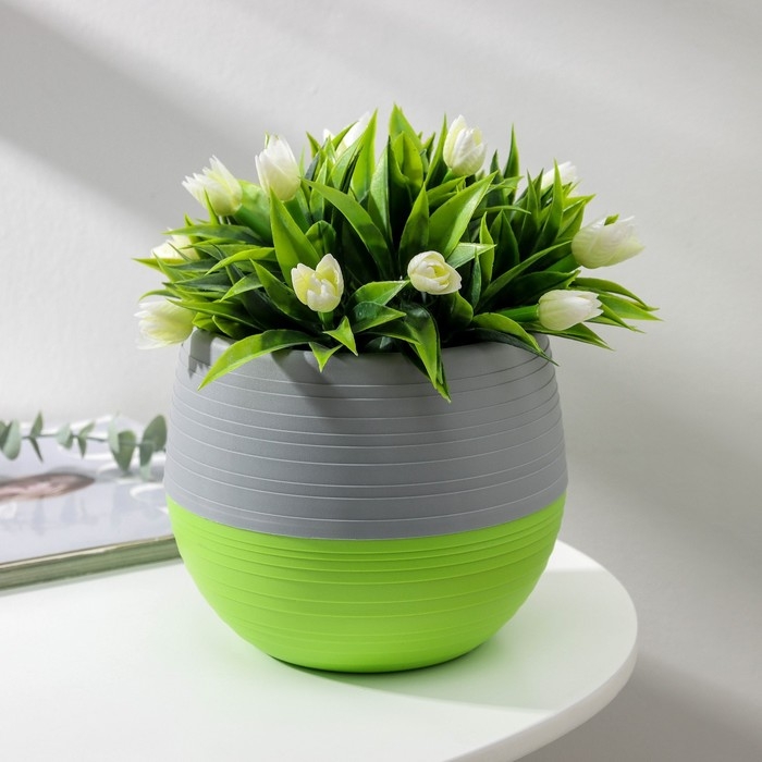 Горшок для цветов с поддоном «Япония», 1,2 л, цвет серо-фисташковый