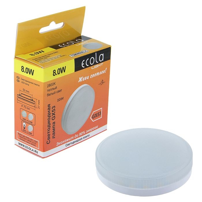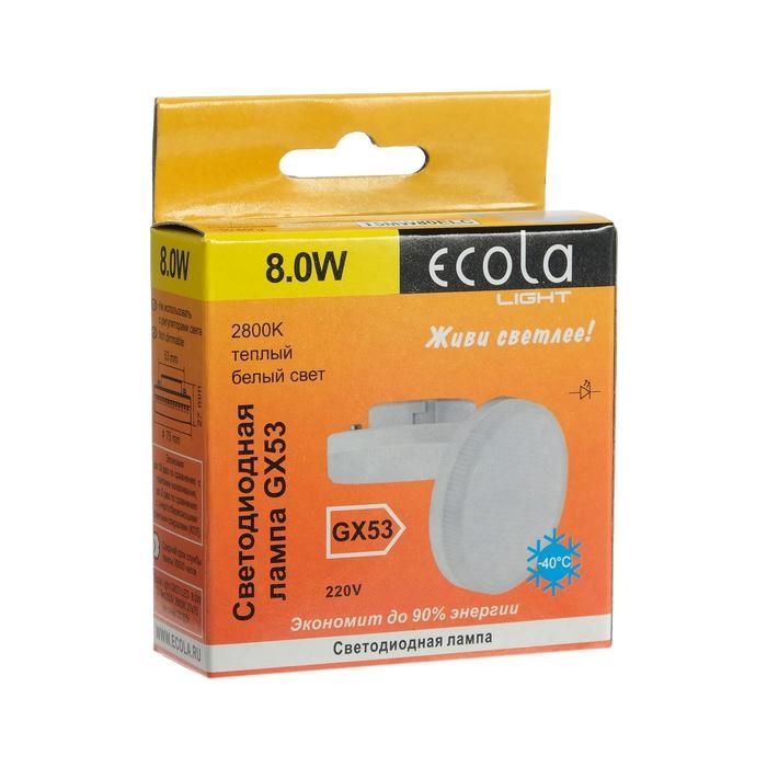 Лампа светодиодная Ecola, GX53, 8 Вт, 2800 K, 220 В, 27x75 мм, матовое стекло