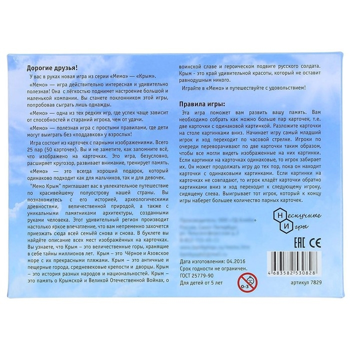 Настольная игра «Мемо. Крым», 50 карточек + познавательная брошюра