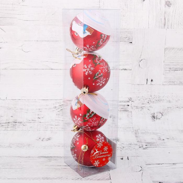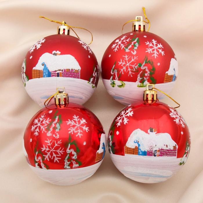 Набор шаров пластик d-7 см, 4 шт "Избушка" красный