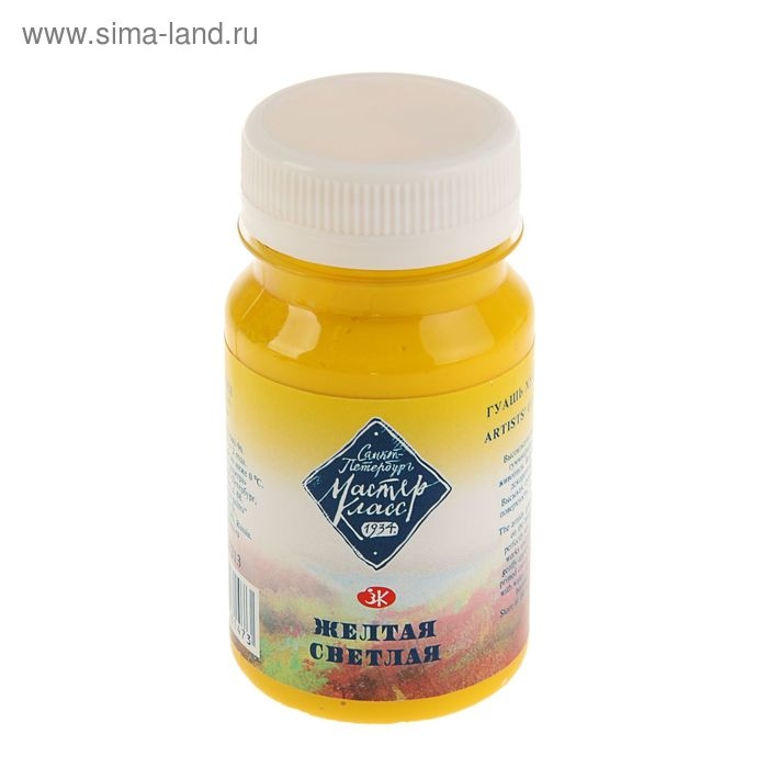 Гуашь художественная в банке 100 мл, ЗХК "Мастер класс", жёлтая светлая (1727213)