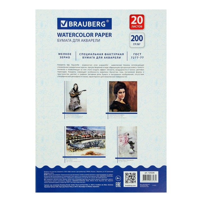 Папка для акварели А4, 210 х 297 мм, 20 листов, блок 200 г/м2, бумага по ГОСТ 7277-77