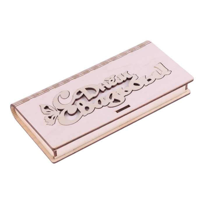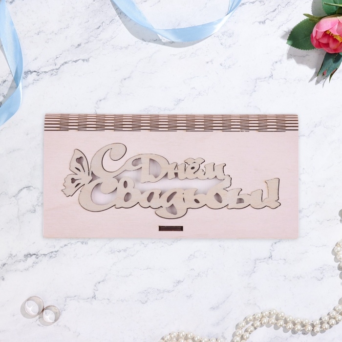 Конверт деревянный "С Днём Свадьбы!" розовый, 17 х 8,5 х 2 см