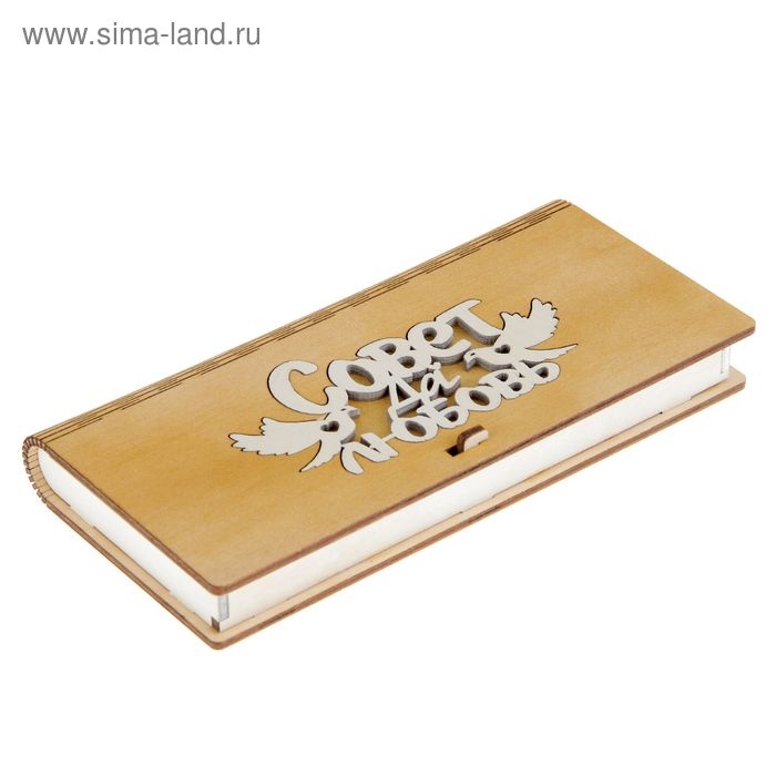 Конверт деревянный "Совет да любовь" желтый, голуби, 17 х 8,5 х 2 см