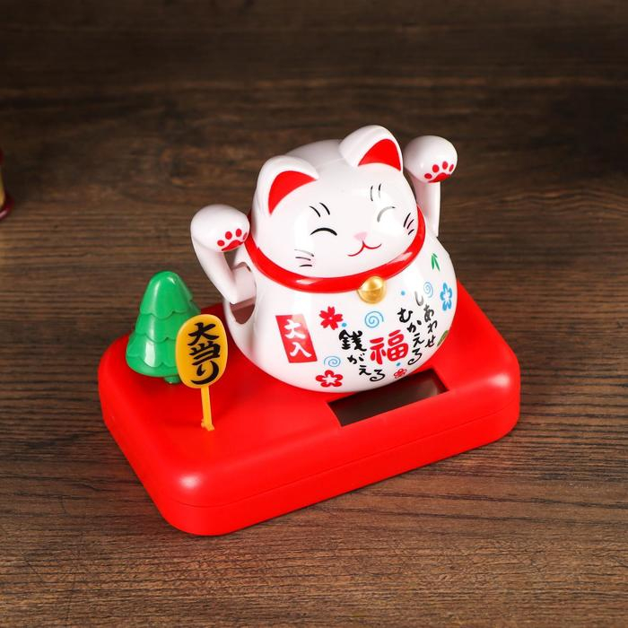 Маятник пластик от солнечной батареи "Кот Манэки-нэко с деревом" белый 8х10х6 см