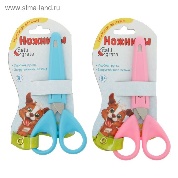 Ножницы канцелярские 13.5 см, пластиковые ручки, закругленные концы, блистер, корпус МИКС