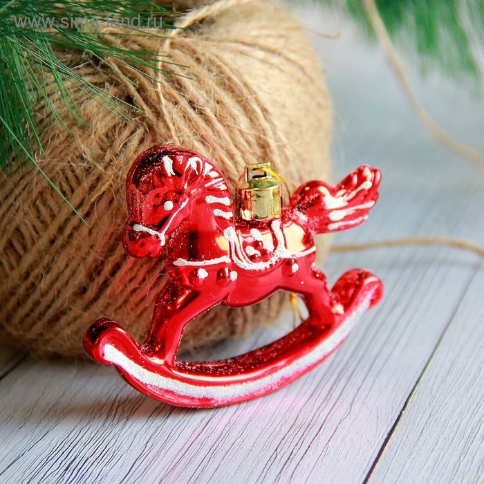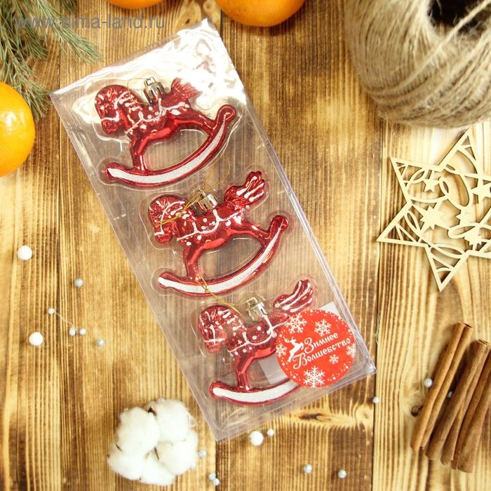 Украшение ёлочное "Лошадка-качалка" (набор 3 шт) 6х8 см, красный