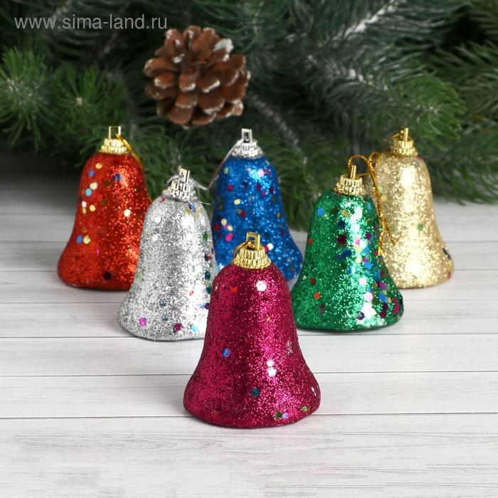 Украшение ёлочное "Колокольчик в блёстках" (набор 6 шт) 4,5х5,5 см, микс