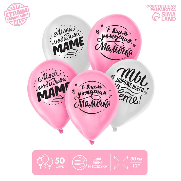 Воздушный шар латексный 12" «Любимой мамочке», 50 шт.