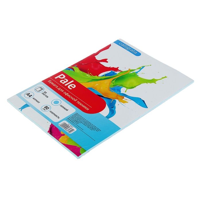 Бумага цветная А4, 50 листов Calligrata Пастель, голубая, 80 г/м²
