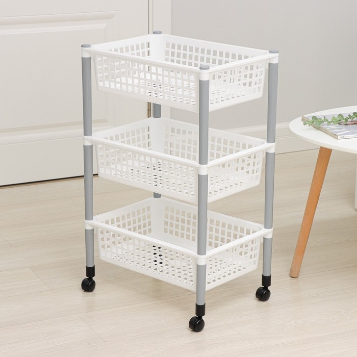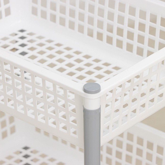 Этажерка напольная универсальная 3-х секционная, на колёсиках, цвет белый
