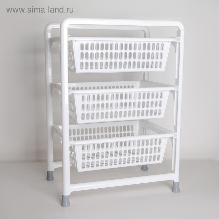 Этажерка напольная 3-х секционная с выдвижными лотками, цвет белый