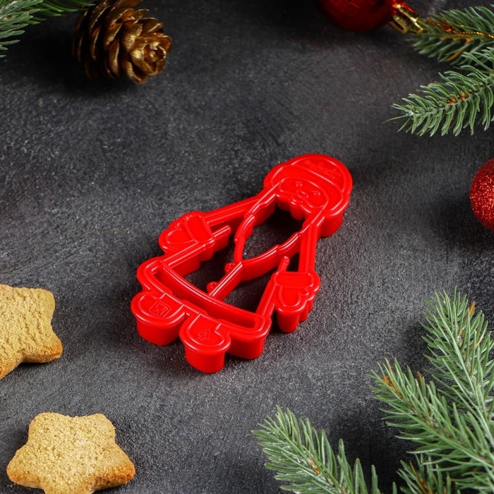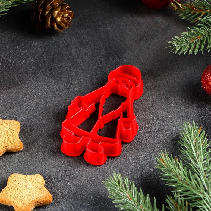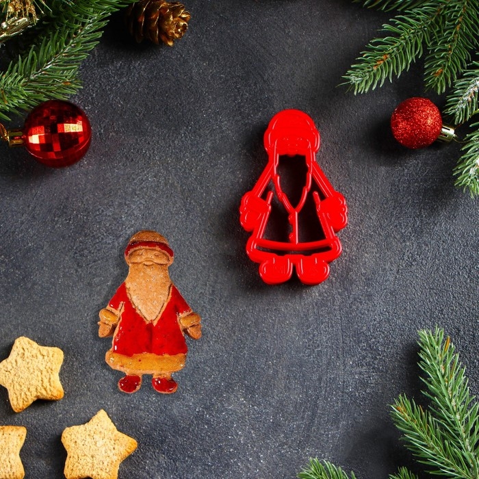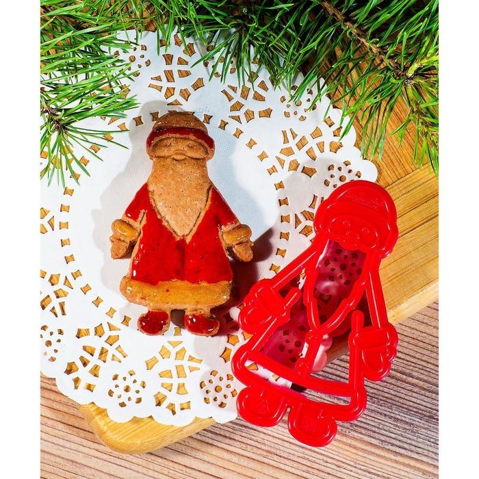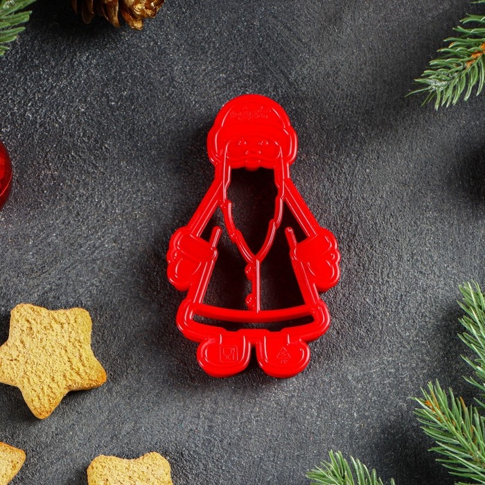 Форма для печенья «Дед Мороз», вырубка, штамп, 10×6 см, цвет красный