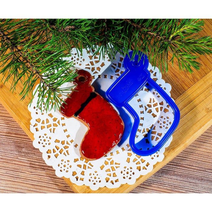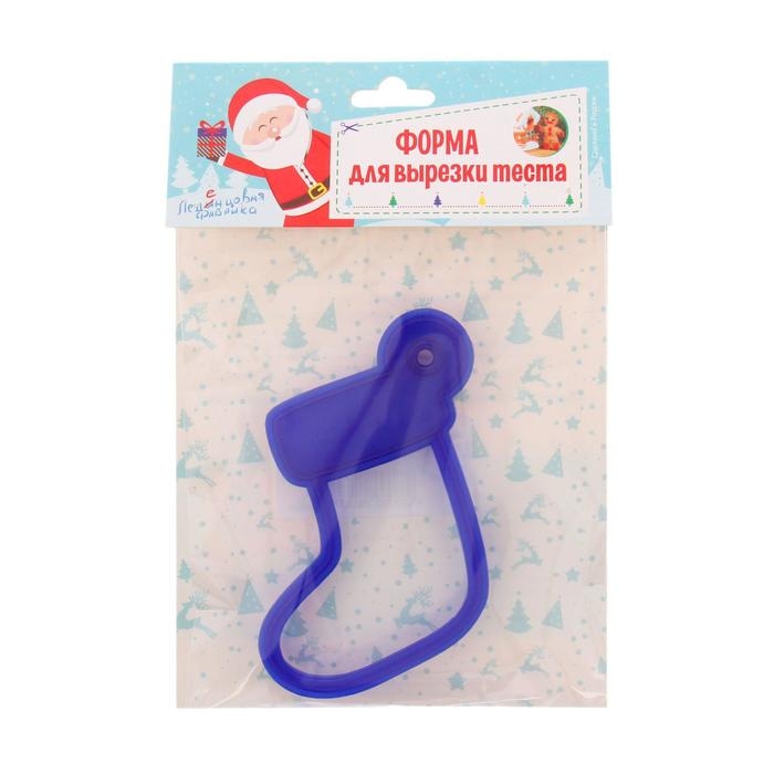 Форма для печенья «Рождественский носок», вырубка, штамп, 9×8 см, цвет синий