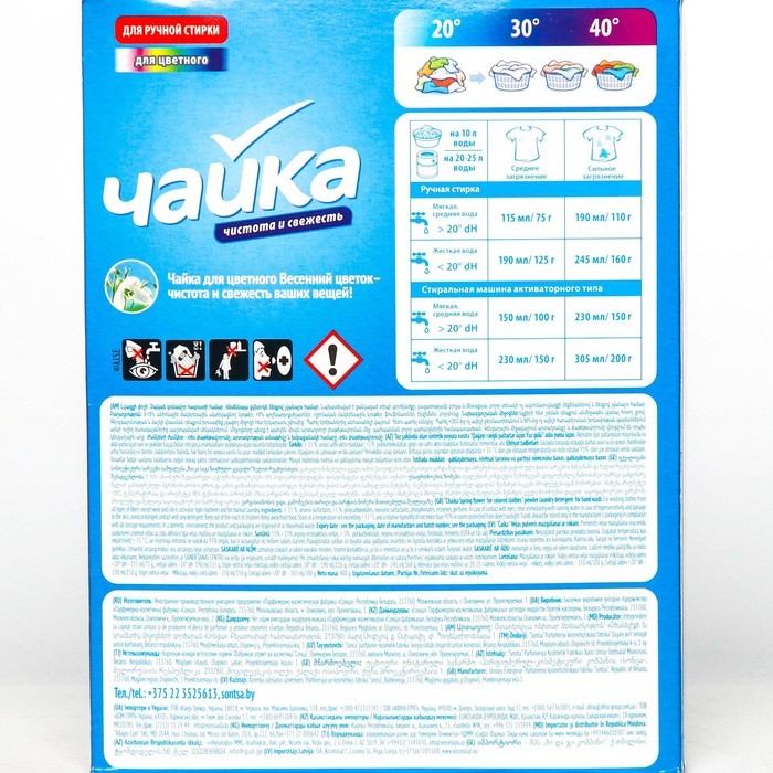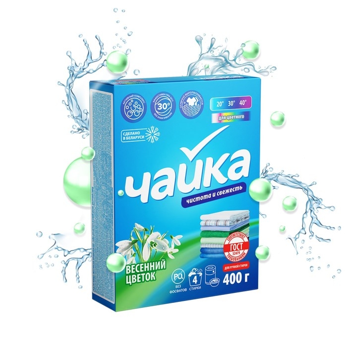 Стиральный порошок Чайка Весенний цветок предназначен для ручной стирки цветных и темных