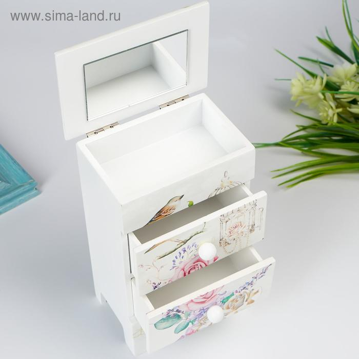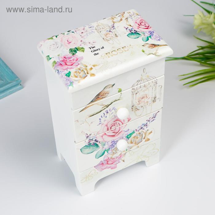 Шкатулка дерево комод 2 ящика "Букет, птица и клетка" 18,5х7,5х11,8 см