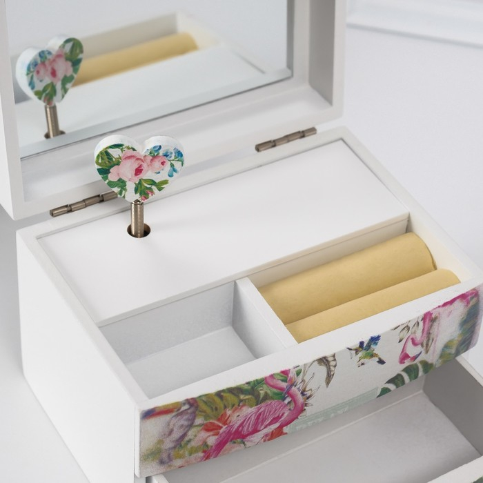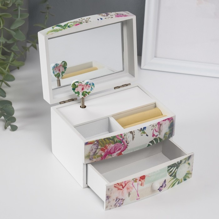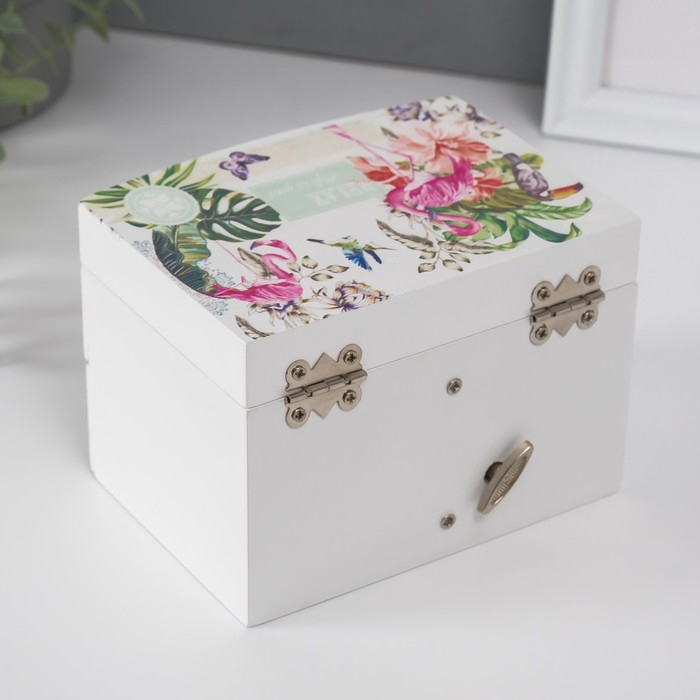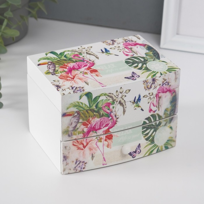 Шкатулка дерево комод 1 ящик музыкальная "Фламинго в тропиках" 9х10х13 см