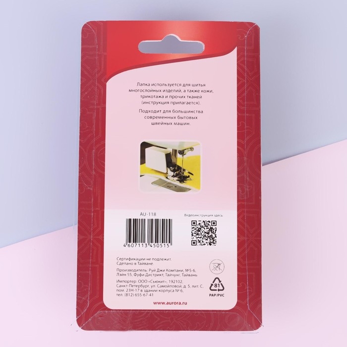 Лапка для швейных машин, шагающая, верхний транспортёр 5 мм, AU-118, 7,5 × 2 × 3,7 см