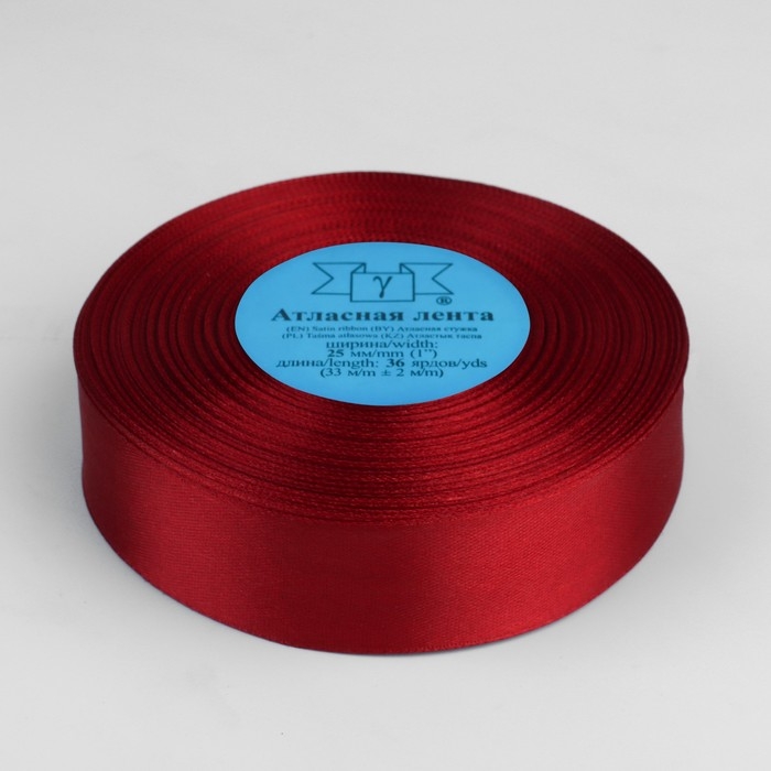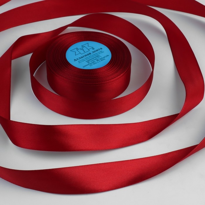 Лента атласная, 25 мм × 33 ± 2 м, цвет красный №065