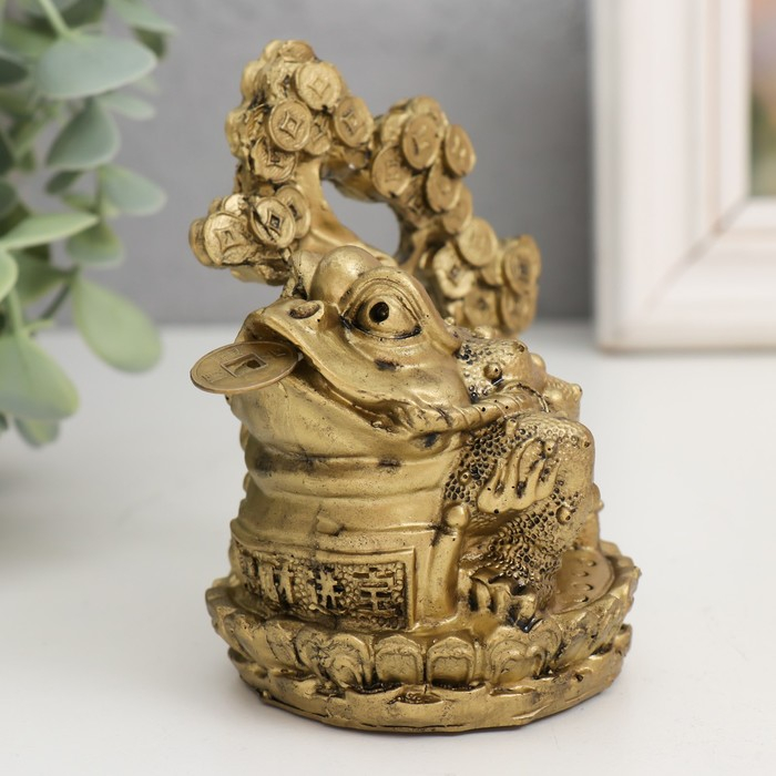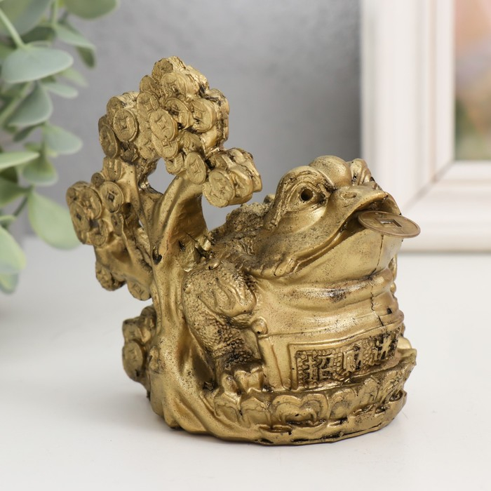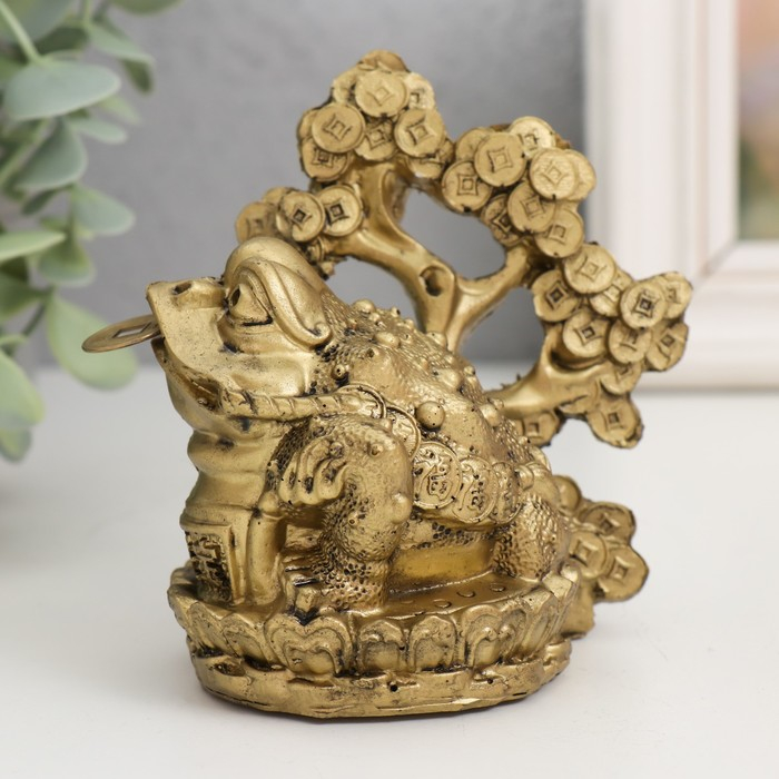 Нэцке полистоун "Жаба с денежным деревом" под бронзу 10х9,5х7,2 см
