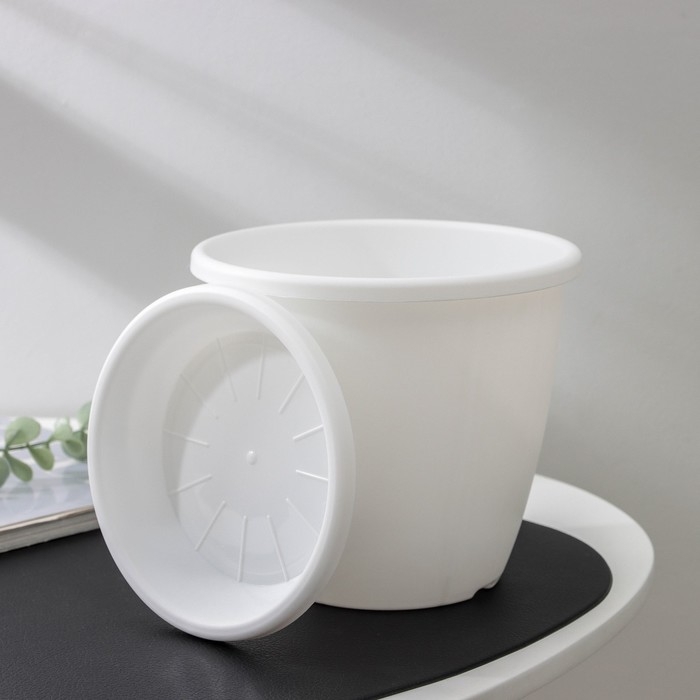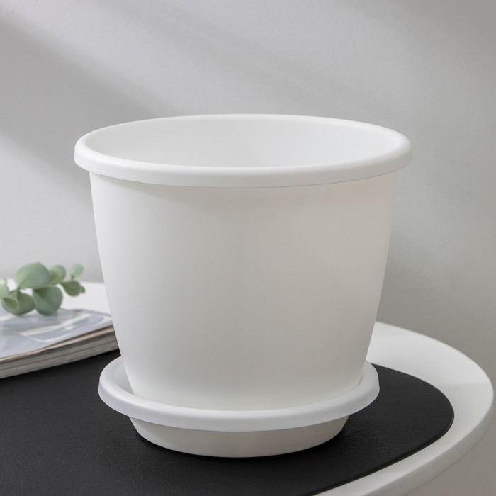 Горшок для цветов с поддоном «Афина», 2,2 л, пластиковый, цвет белый