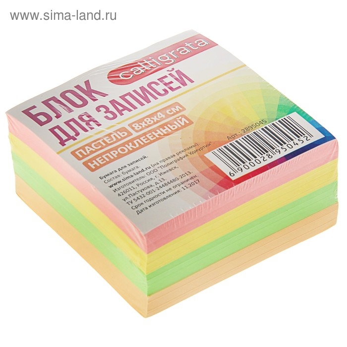 Блок бумаги для записей Calligrata 8x8x4 см, 80 г/м², непроклеенный, цветной, пастель