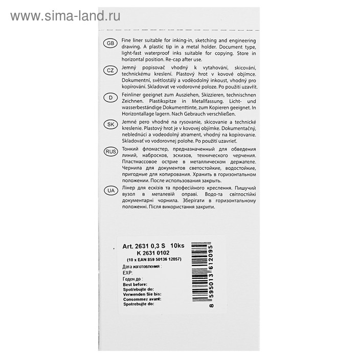 Ручка капиллярная для черчения Centropen 2631 линия 0.1 мм, цвет чёрный, длина письма 500 м