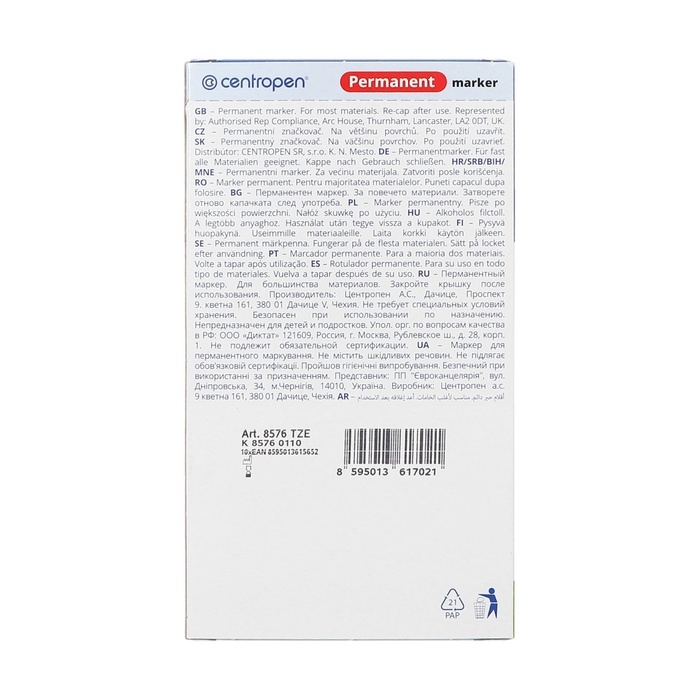Перманентный универсальный маркер пишет на большинстве поверхностей, после засыхания устойчивый к воде, стиранию, атмосферным воздействиям.