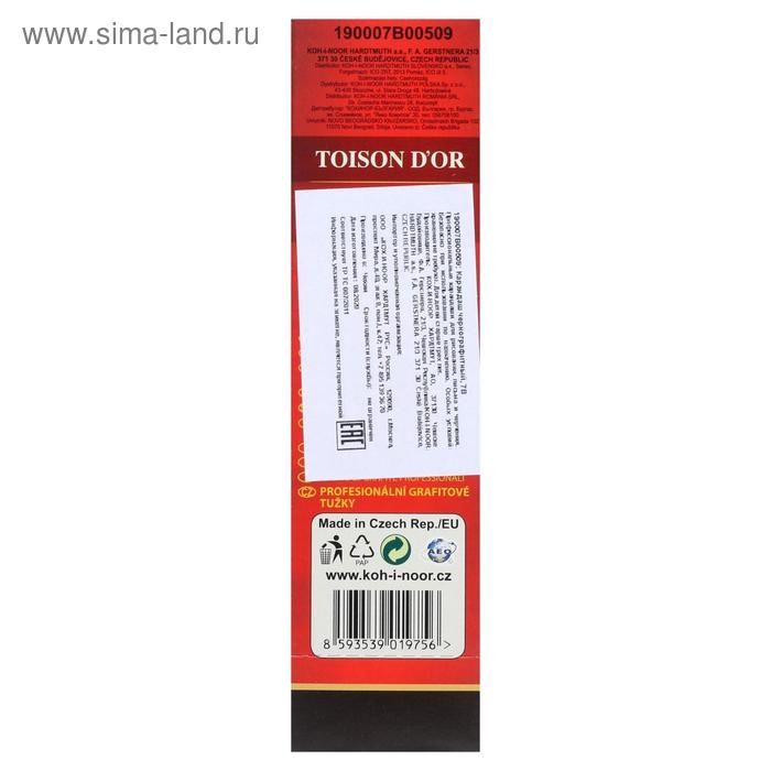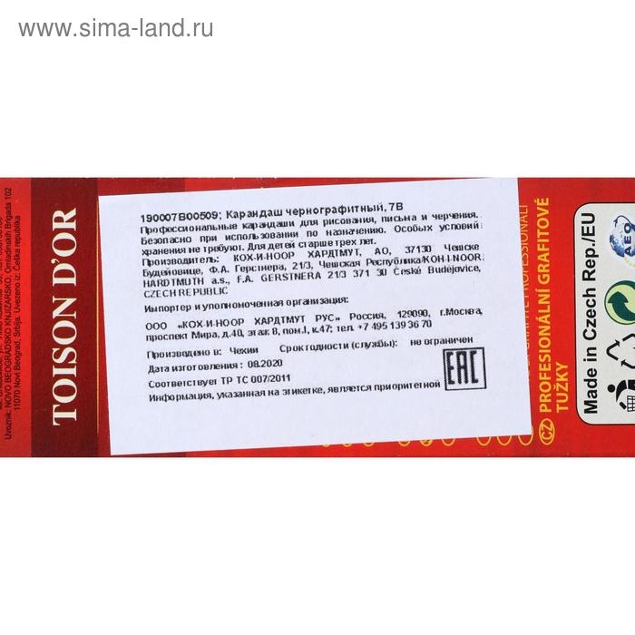 Карандаш профессиональный чернографитный 2.5 мм, Koh-I-Noor 1900 7В, L=175 мм