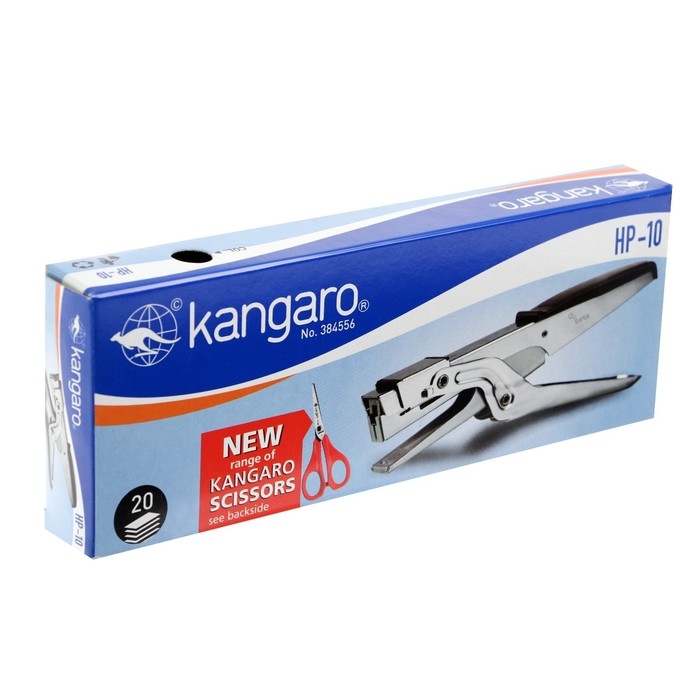 Ручной степлер Kangaro HP-10 для сшивания листов навесу. Корпус выполнен из металла, а пластиковая ручка гарантирует удобное использование. Незаменим на складе и при оформительских работах.