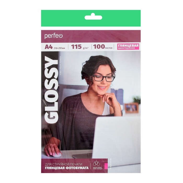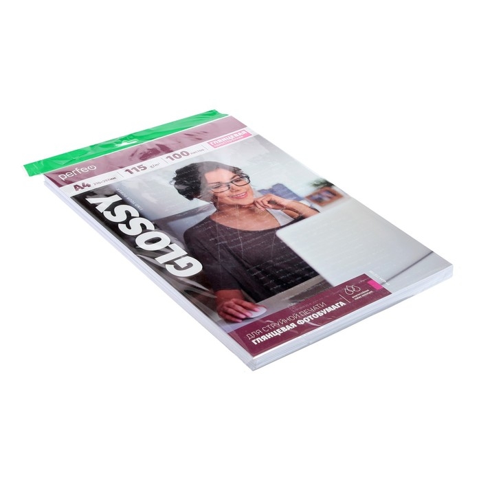 Фотобумага для струйной печати А4, 100 листов Perfeo, 115 г/м2, односторонняя, глянцевая