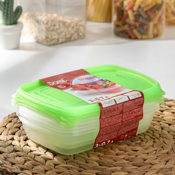 Набор контейнеров «Трио», 3 шт, 700 мл, цвет прозрачный, крышка МИКС