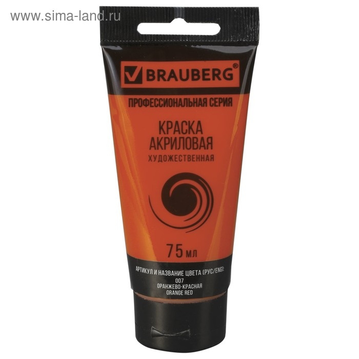 Краска акриловая художественная туба 75 мл, BRAUBERG "Оранжево-красная"