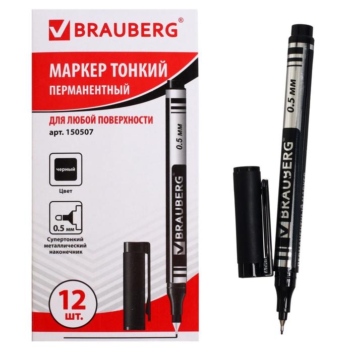 Маркер перманентный 0.5 мм BRAUBERG Jet, чёрный