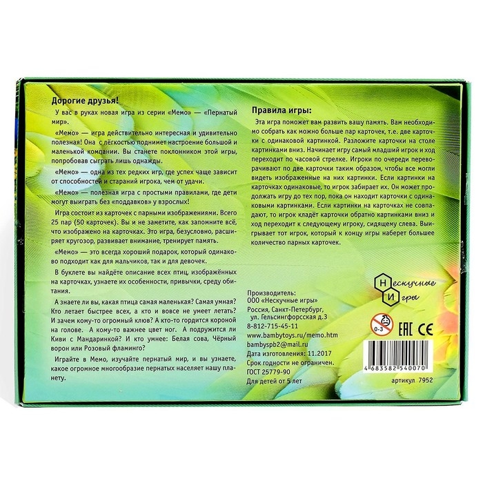 Настольная игра «Мемо. Пернатый мир», 50 карточек + познавательная брошюра